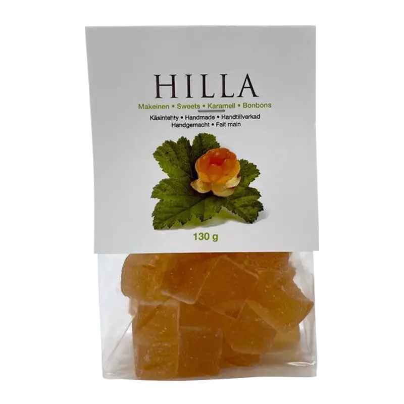 Käsintehtyjä hilla makeisia. Valmistettu Suomessa. Kuin Pohjolan kesäyön auringon kultainen pisara. Väärentämättömänä suoraan Lapin soilta. Kultainen makukin on tallella, mukanaan aavistus suovarpujen aromia helteisiltä mättäiltä.