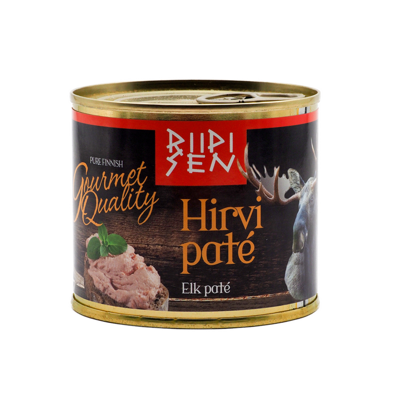 Ainesosat: Hirvenliha (33%), vesi, sianliha, sianmaksa, perunatärkkelys, suola, soijaproteiini, sokeri, mausteet (valkopippuri, inkivääri, korianteri), stabilointiaine (E450), hiivauute, hapettumisenestoaine (E316), arom it (rosmariini, timjami, neilikka), säilöntäaine (E250).