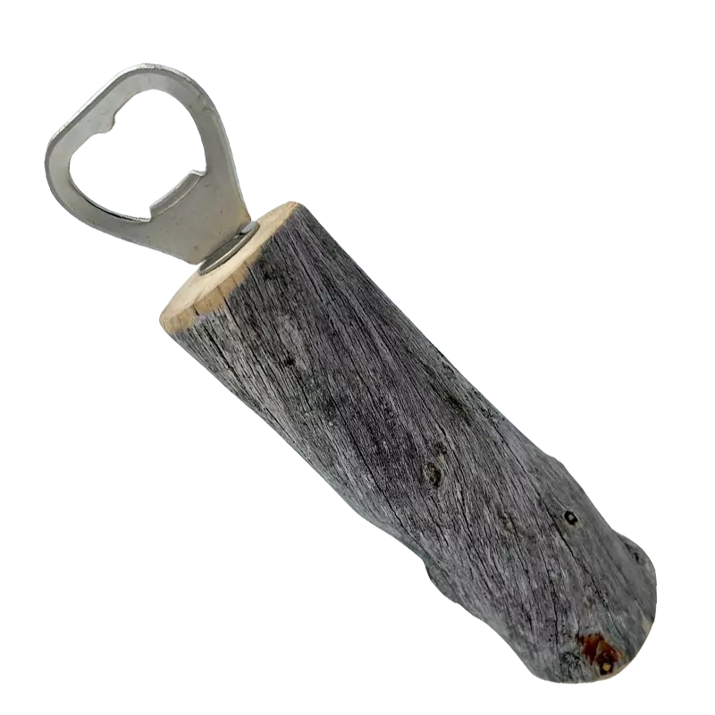 Kelo pullonavaaja. Puuosan pituus n. 12 cm, koko pituus n. 15 cm.