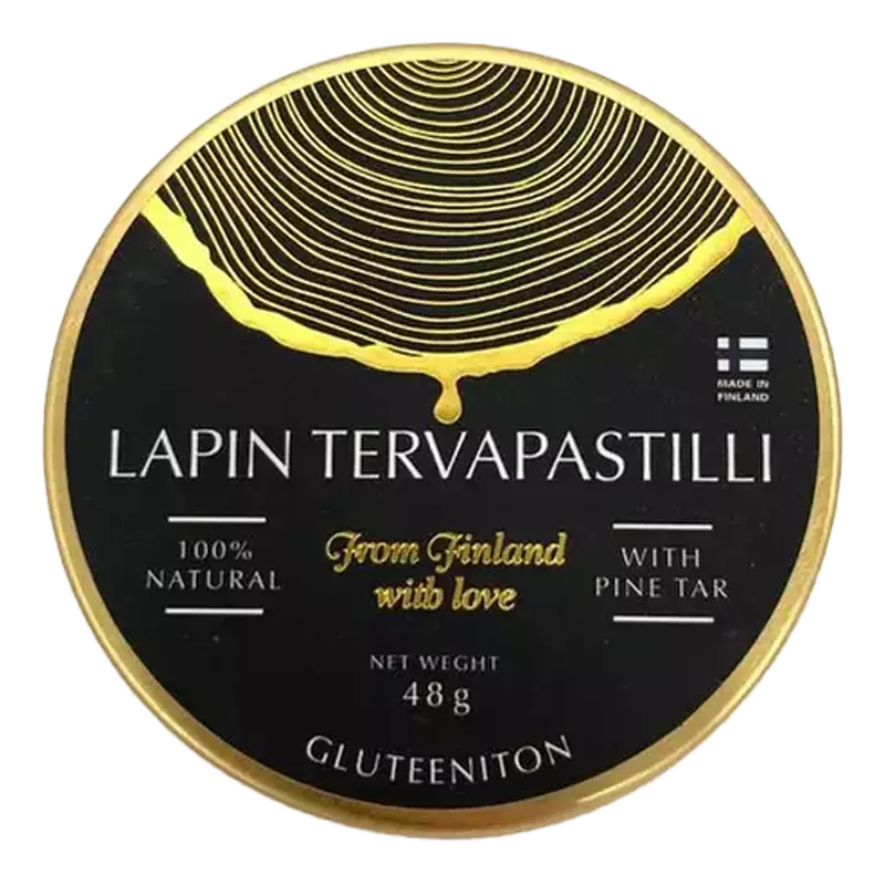 Tervan makuisia pastilleja, pakkauskoko 48 g. Gluteeniton. Valmistettu Suomessa.
