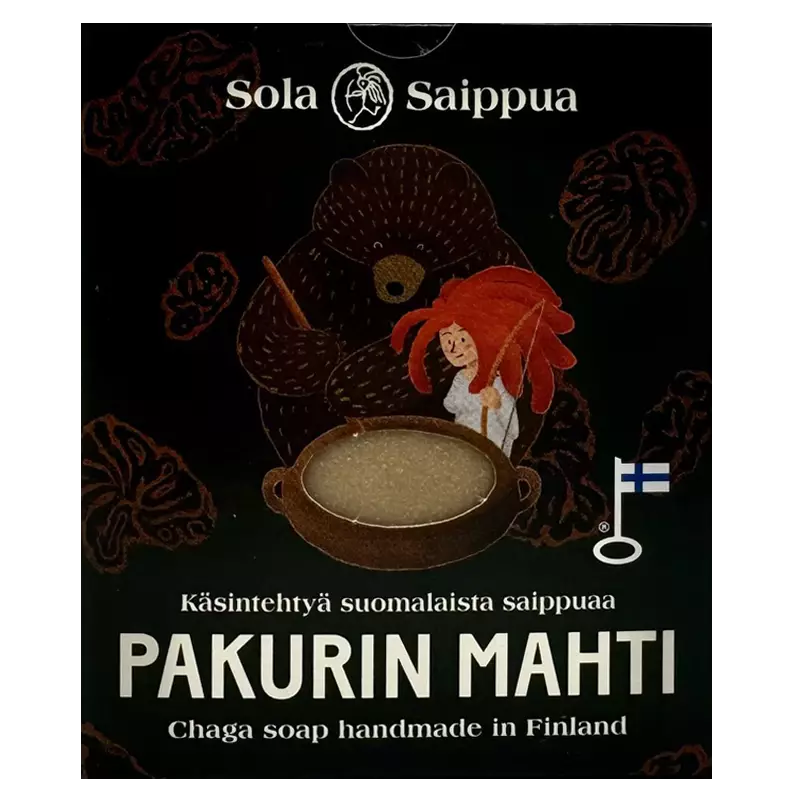 Ainesosat: Luomurypsiöljy, pakuritee, luomukookosöljy, lipeä, risiiniöljy, katajan-, setrin- ja männyn eteeriset öljyt.