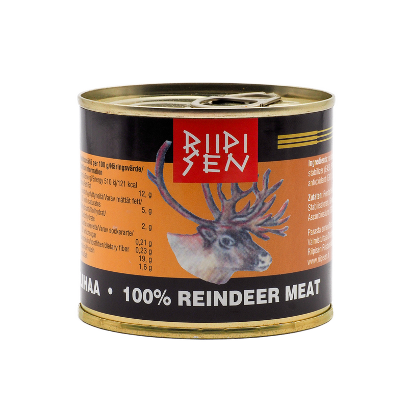 Ainesosat: Poronliha (86%), vesi, suola, perunatärkkelys, soijaproteiini, stabilointiaine (E450), dekstroosi, mausteet ja aromit (valkopippuri, maustepippuri, inkivääri, rosmariini, timjami), hapettumisenestoaine (E316), säilöntäaine (E250).