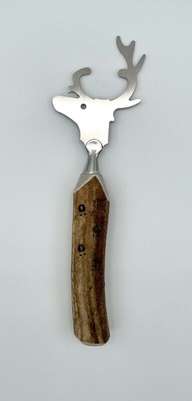 Poronluu Pullonavaaja Poro. Varressa kauniit lappi-aiheiset polttokuviot. Valmistettu poronluusta ja ruostumattomasta teräksestä. Valmistettu Suomessa.