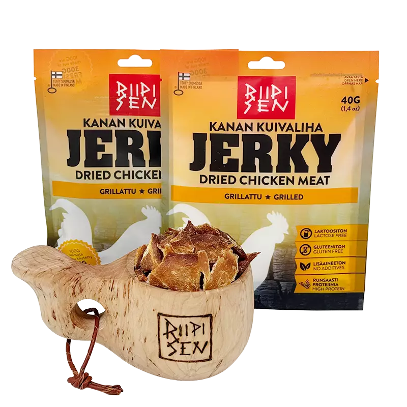 Erittäin maukasta ja hyvin suolattua liha lastua! Sopii todella hyvin retkelle proteiini lähteeksi ja suolan saantiin pitkille vaelluksille. Helppo pakata ja hyvä vedenpi...