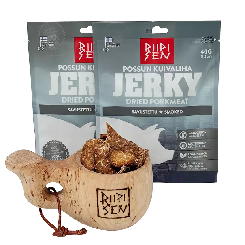 Koko perheen kuivaliha. Kotimaisesta lihasta, ilman lisäaineita ja jatkeita valmistettu, possun kuivaliha.