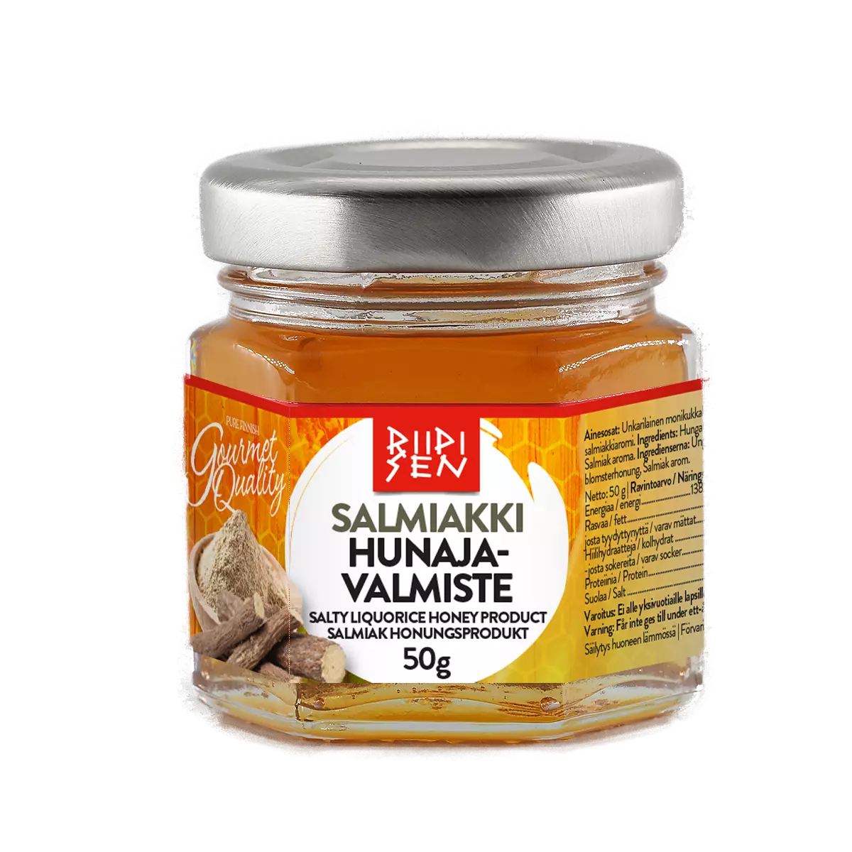 Laadukas ja maukas Riipisen hunajavalmiste suomalaisten herkun, salmiakin aromin ystäville.