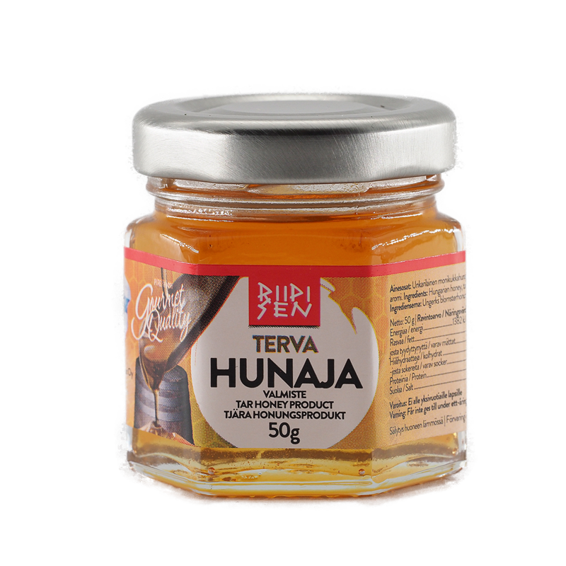 Hunajavalmisteemme sopivat hyvin teen kanssa, kuumiin juomiin ja jälkiruokiin. Käytämme hunajissa laadukasta Unkarilaista monikukkahunajaa, koska sen rakenne pysyy hyvin juoksevana, eikä hunaja kiteydy helposti.