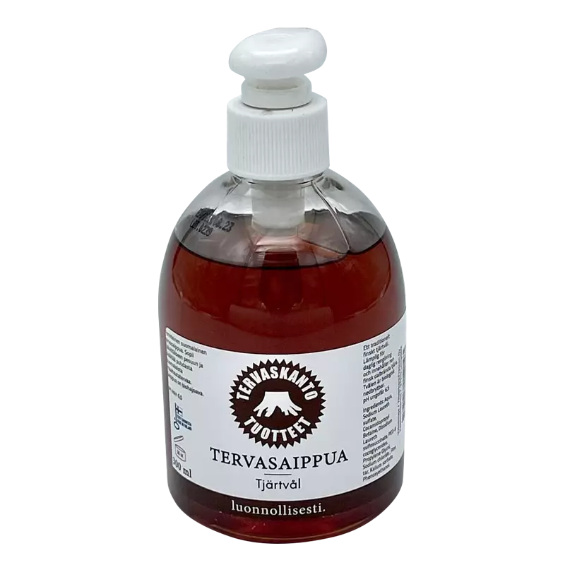 Perinteinen suomalainen tervasaippua. Sopii päivittäiseen pesuun ja sisältää puhdasta maahautatervaa.