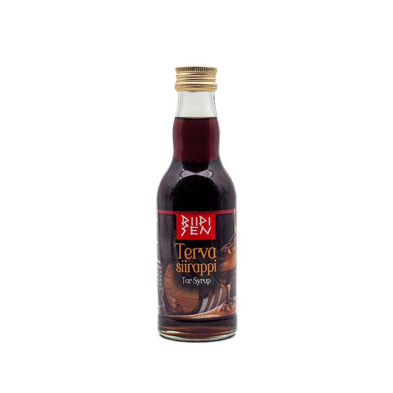 Ainesosat: Sokeri, vesi, tärkkelyssiirappi, terva-aromi, elintarvikeväri (E150c), säilöntäaine (E211).